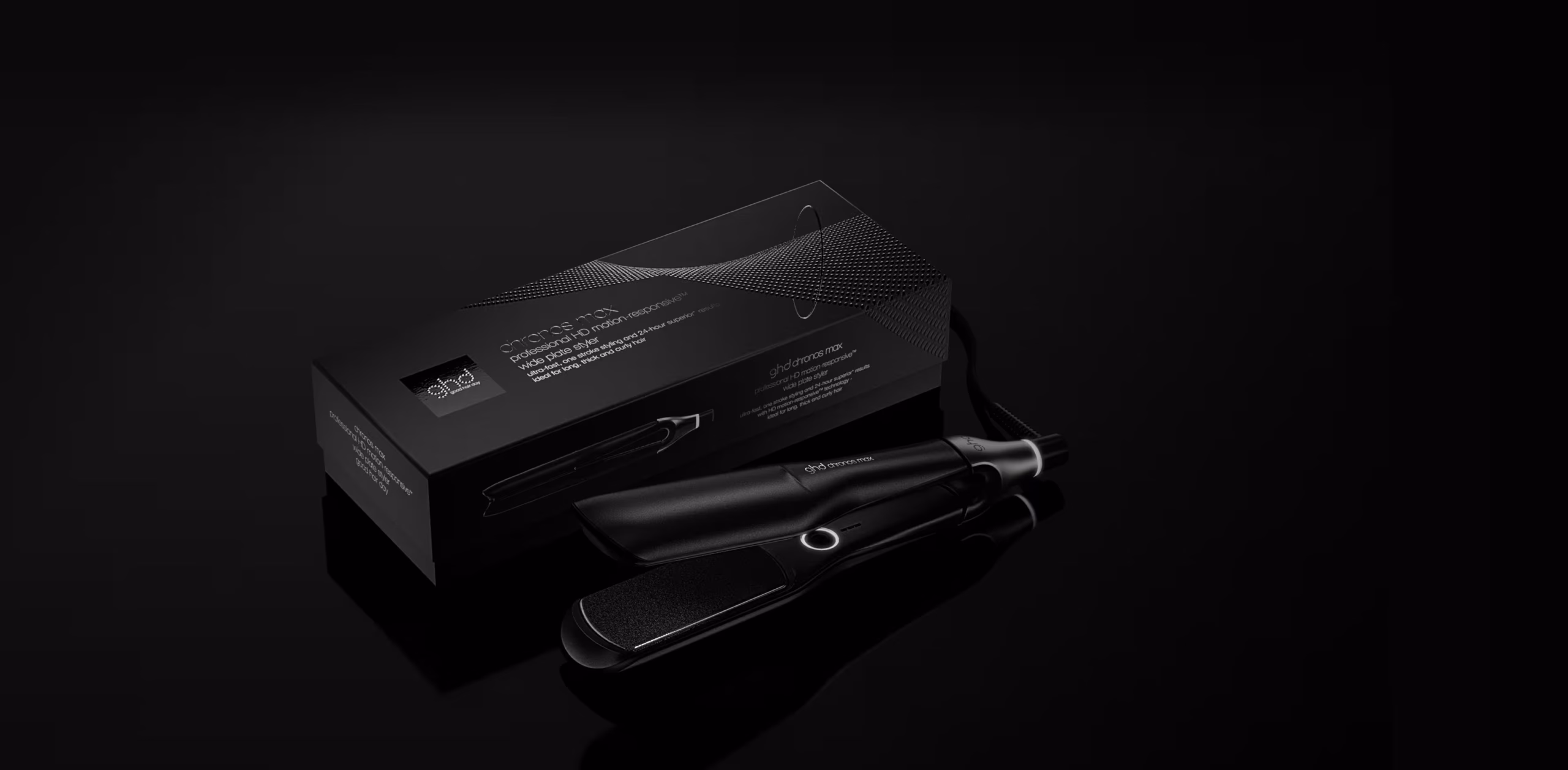 L’innovation au service de la coiffure haute définition : découvrez le nouveau lisseur professionnel ghd Chronos Max noir à plaques larges, doté de la technologie HD motion-responsive™ et d’une réactivité 2X supérieure au lisseur ghd platinum+ et un coiffage 3X plus rapide².