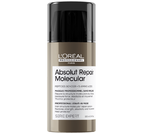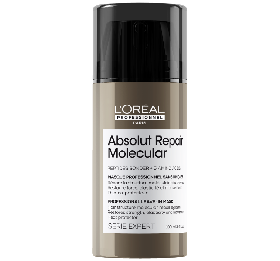 Le masque sans rinçage Absolut Repair Molecular répare la structure macro-moléculaire du cheveu.* + 97% de force.** Sa formule légère pénètre instantanément pour un touché naturel. + 52% de nutrition.** Le cheveu est lisse, brillant, visiblement plus sain et protégé des agressions extérieures et de la chaleur jusqu’à 230°C.**
